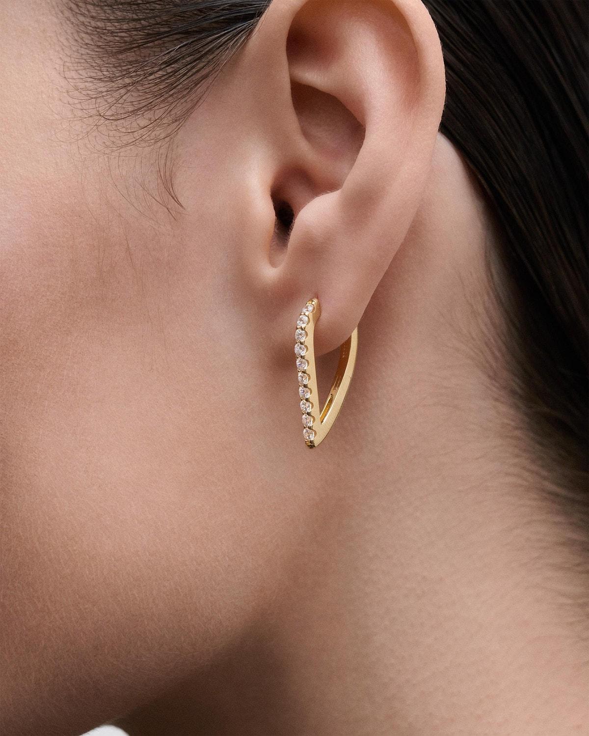 Geometrijske minđuše ovalnog oblika sa malim belim kamenčićima.
