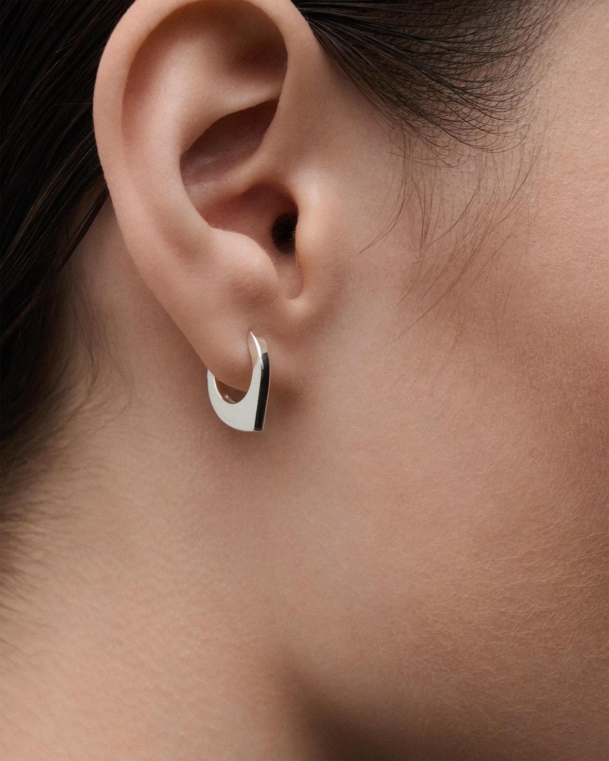 Srebrne geometrijske minđuše sa asimetričnim okruglim oblikom.