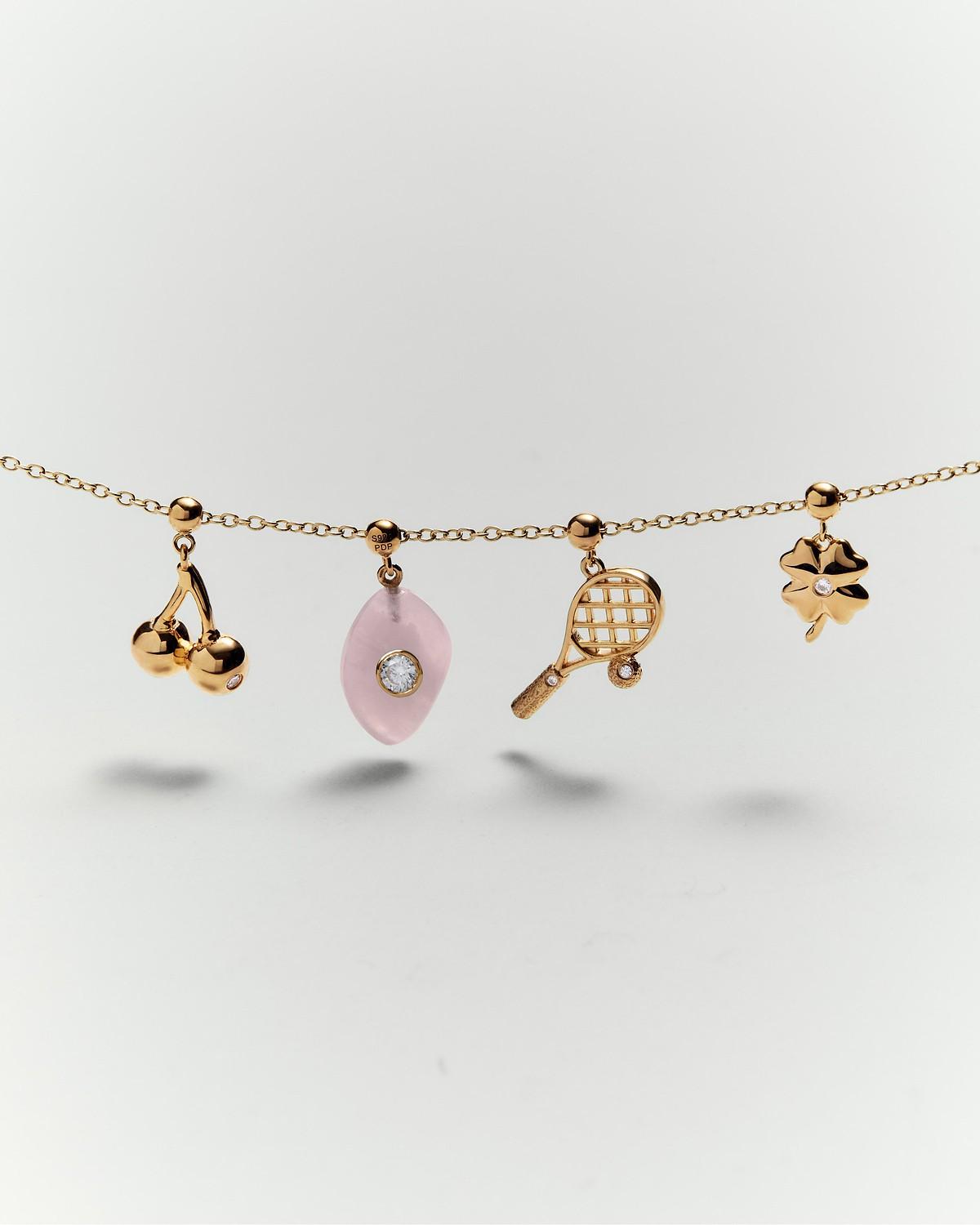 Ručno izrađeni od 18k pozlaćenog srebra i ukrašeni prirodnim dragim kamenjem i belim cirkonom. Od priveska u obliku čamca i priveska u obliku gitare do priveska u obliku kuvara i umetnika, pronađite one koji vaše strasti i kreirajte kolekciju sa vašom ličnošću.