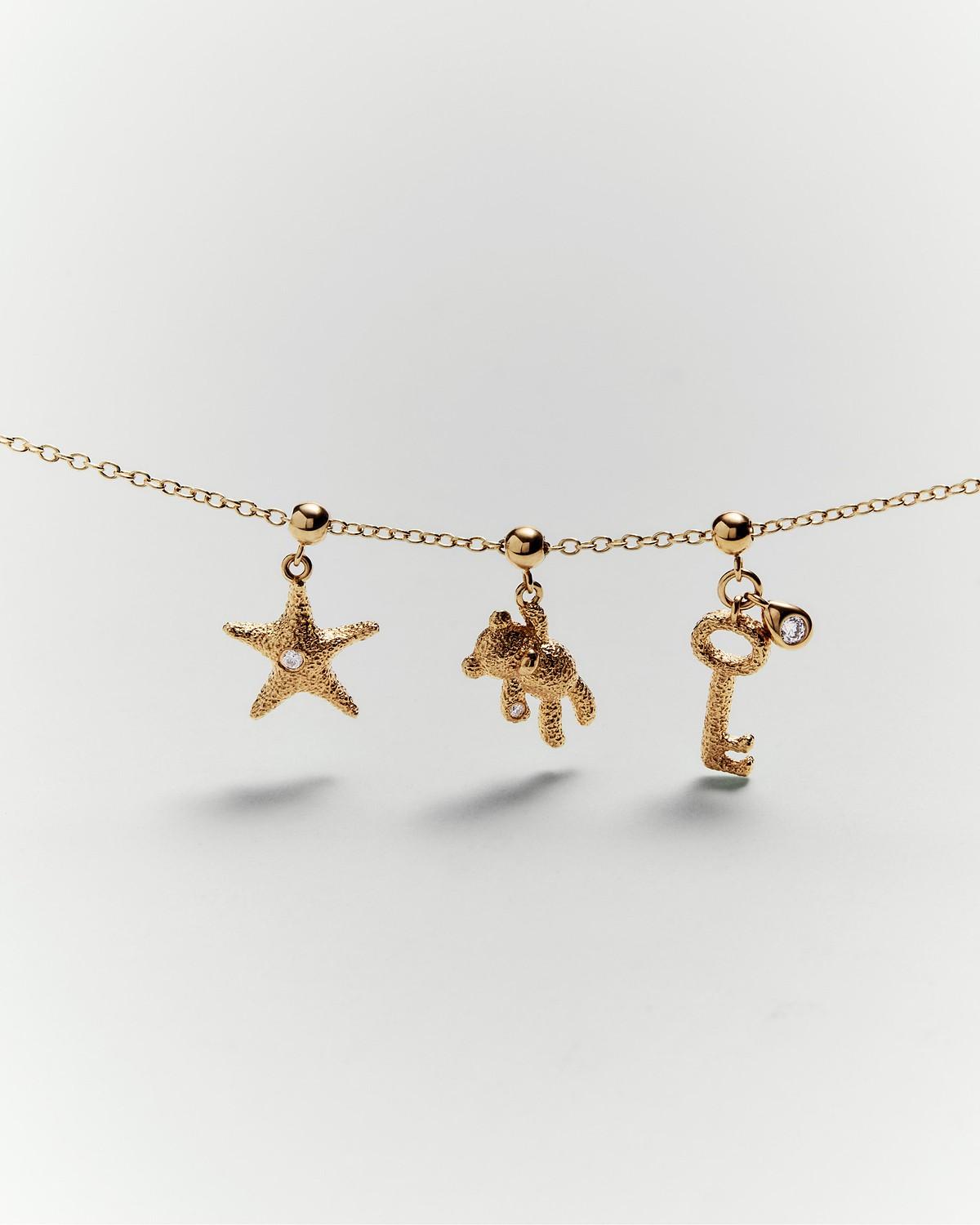 Ručno izrađeni od 18k pozlaćenog srebra i ukrašeni prirodnim dragim kamenjem i belim cirkonom. Od priveska u obliku čamca i priveska u obliku gitare do priveska u obliku kuvara i umetnika, pronađite one koji vaše strasti i kreirajte kolekciju sa vašom ličnošću.