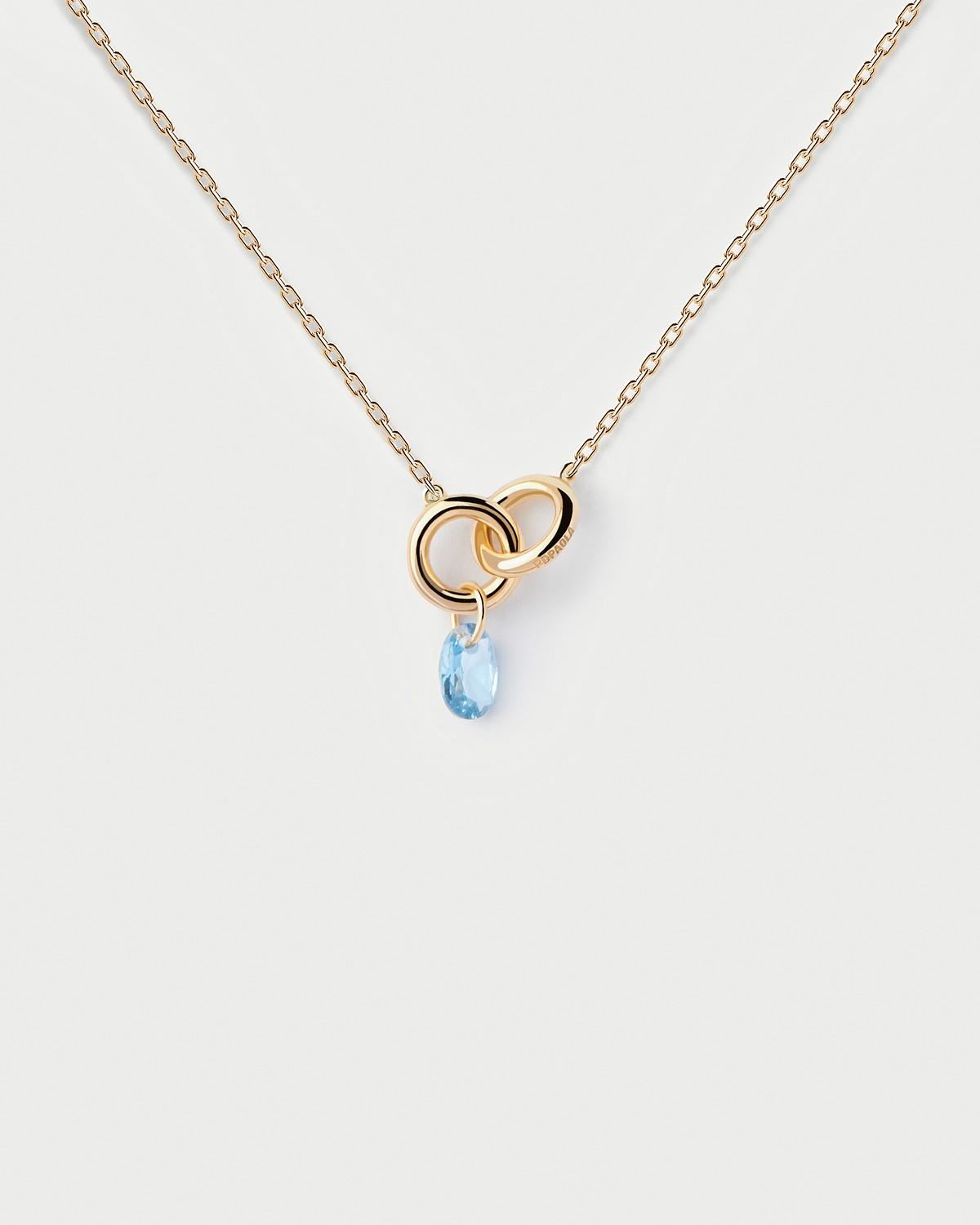 Pozlaćena ogrlica sa dva međusobno povezana prstena i priveskom od plavog cirkona.