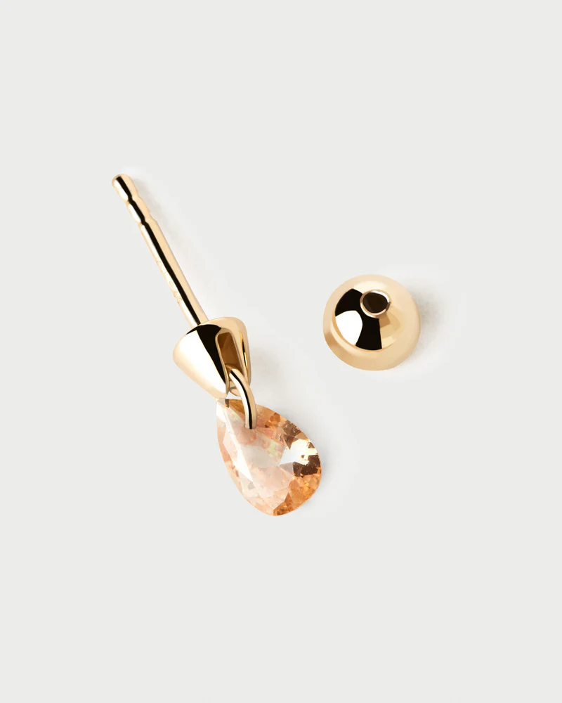 Pozlaćena minđuša sa priveskom u obliku cirkona boje breskve.