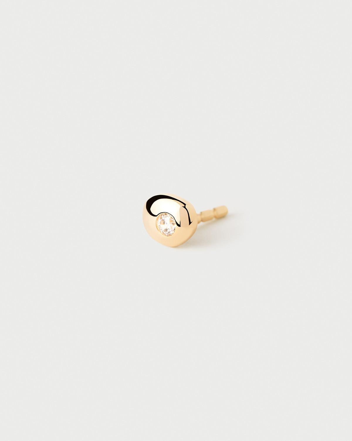 Pozlaćeni pirsing za uvo okruglog oblika, ukrašen ugrađenim cirkonom.