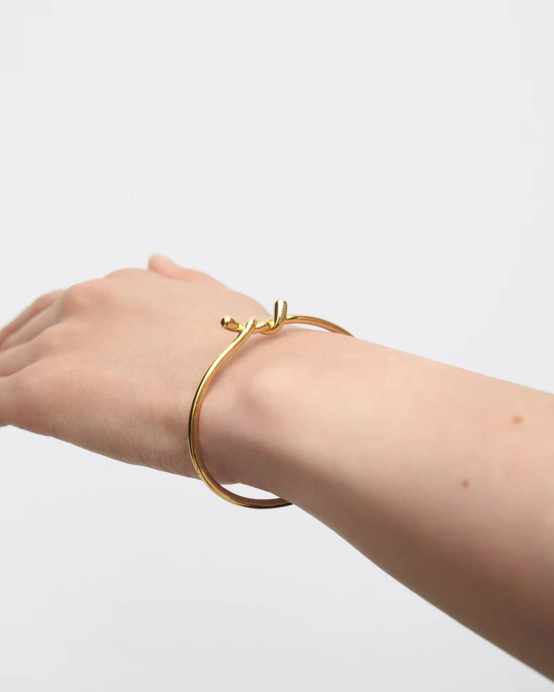 Pozlaćena prepoznatljiva narukvica sa fluidnim uvijenim motivom .