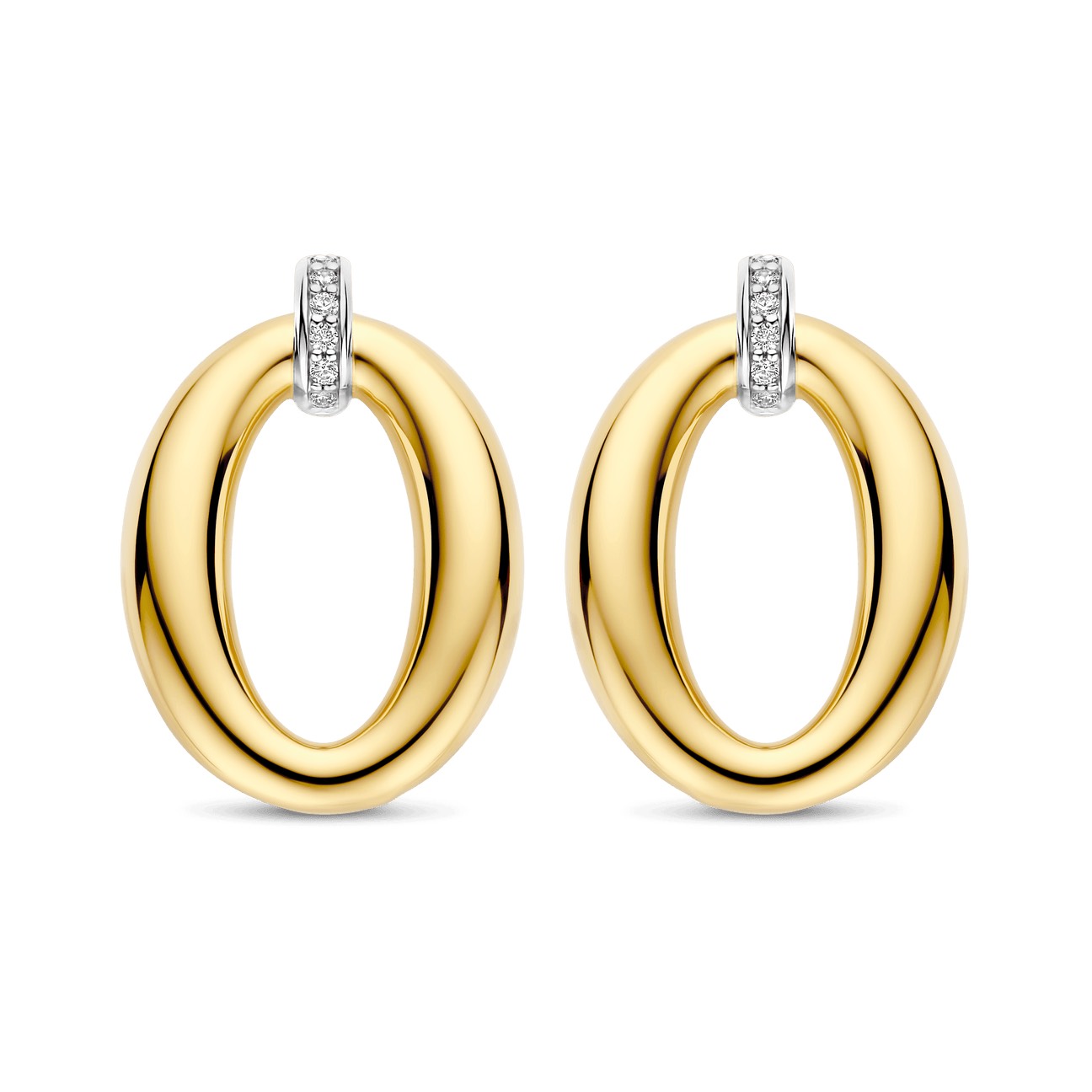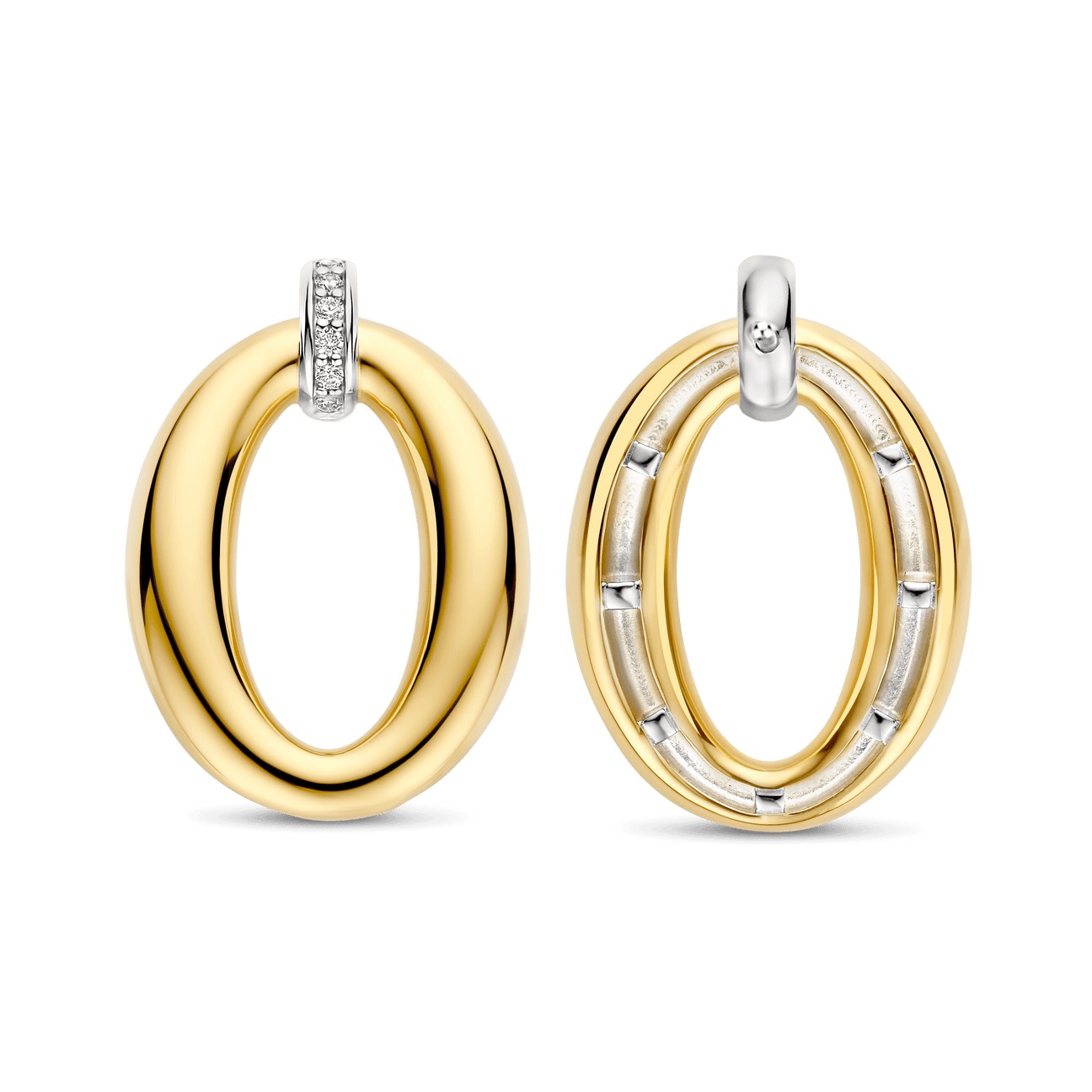Ove Ti Sento pozlaćene srebrne minđuše donose smeo, savremen dodir ležernoj eleganciji. Mešavina toplih zlatnih tonova i hladnih platinastih akcenata stvara upečaljiv kontrast, spajajući modernu oštrinu sa bezvremenskom privlačnošću.