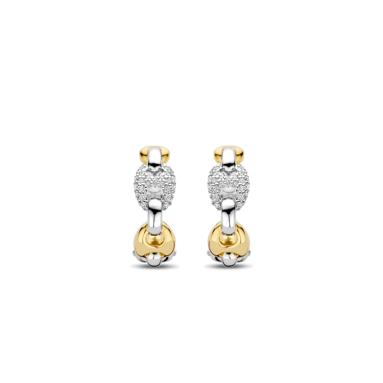 Prepustite se bezvremenskoj eleganciji sa ovim pozlaćenim Ti Sento minđušama. Izrađene su od srebra 925 i obložene platinom za trajni sjaj, ove minđuše imaju zadivljujući niz oblika zrna kafe, koje se smenjuju između srebra, žutog zlata i blistavih cirkona.