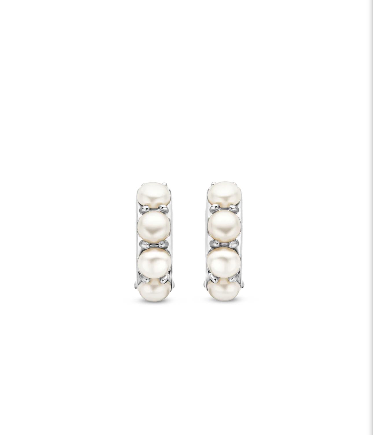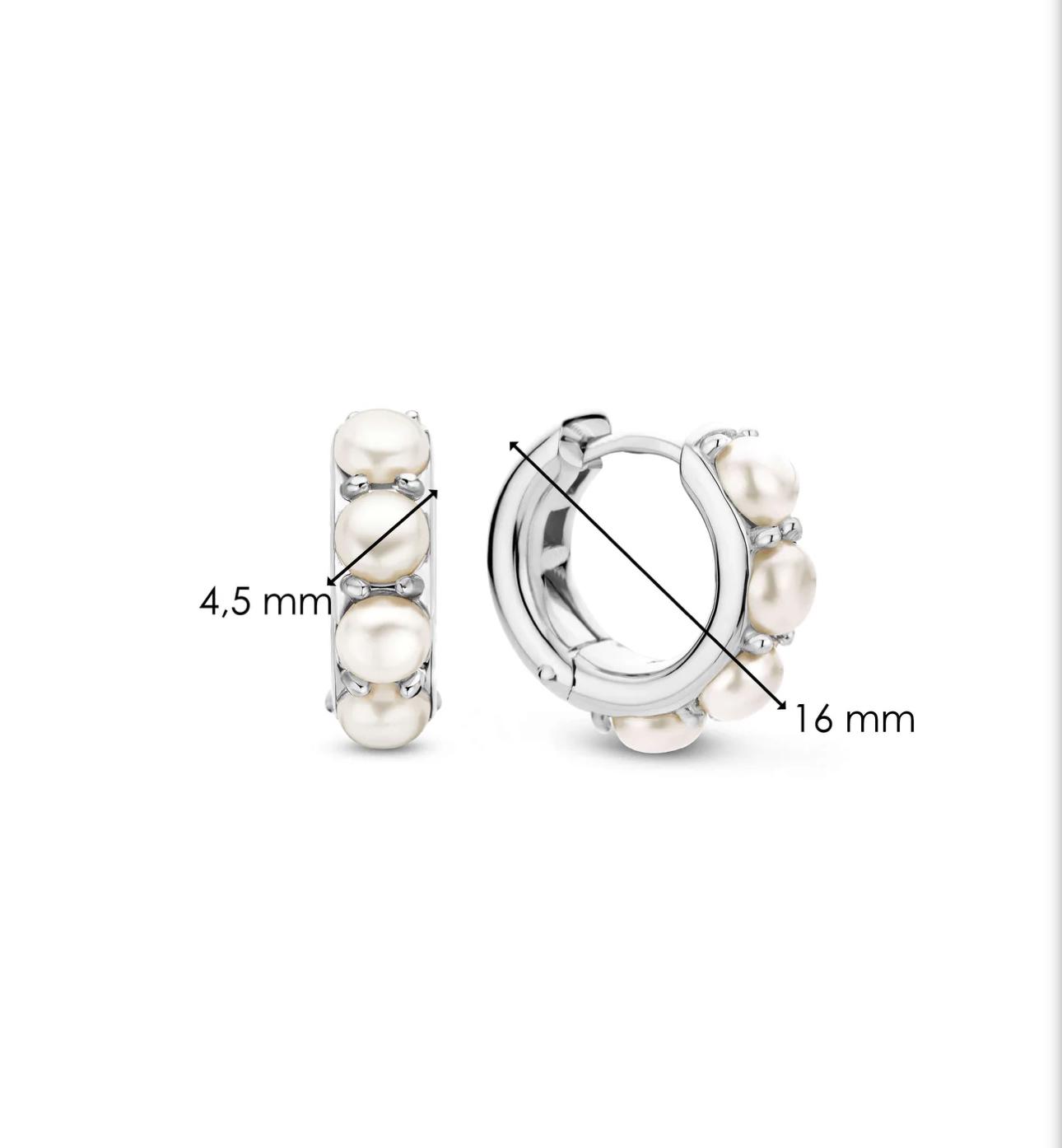 Ove srebrne Ti Sento minđuše odlikuju se bezvremenskom mešavinom moderne sofisticiranosti i klasičnog šarma. Nežno su ukrašene nizom ručno ugrađenih bisera, stvarajući elegantan i prefinjen dodatak. Pažljivo izradjene od vrhunskog srebra 925, presvučene su platinom da bi se zaštitile od svakodnevnog habanja.