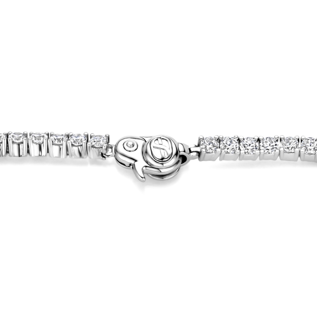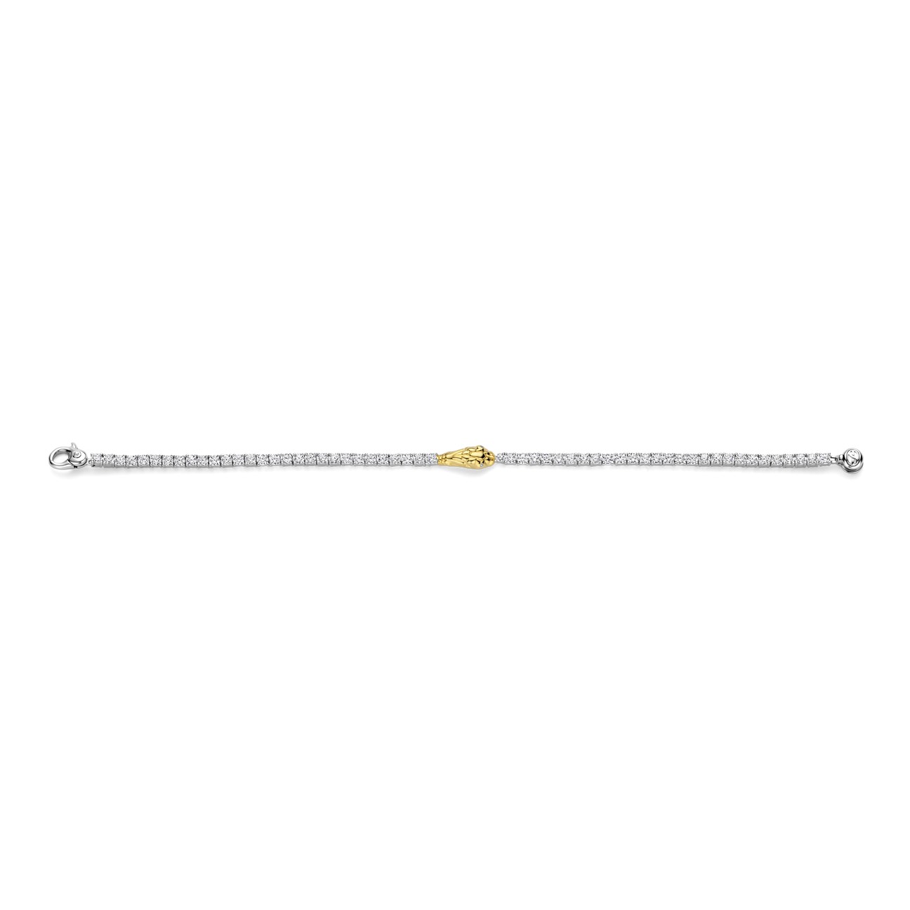 Dodajte dodir neočekivanog svom zglobu sa ovom srebrnom Ti Sento teniskom narukvicom. Ovaj intrigantni dizajn karakteriše klasična linija blistavih belih cirkona. Srebro je presvučeno dragocenom platinom kako bi komad ostao blistav i zaštićen od ogrebotina. Centralni deo narukvice sadrži luksuznu pozlaćenu zmiju sa očima od cirkona koje blistaju zadivljujućim sjajem.