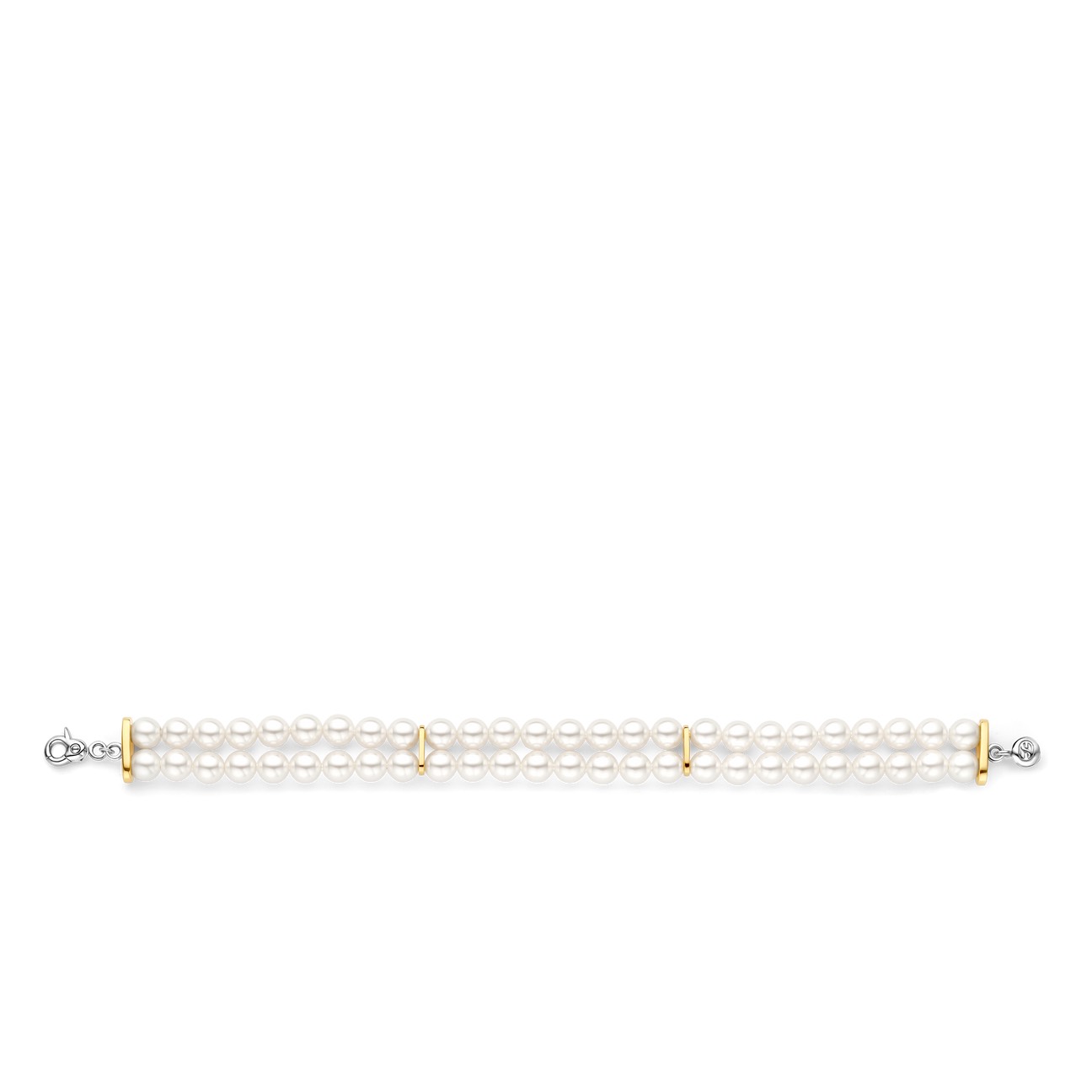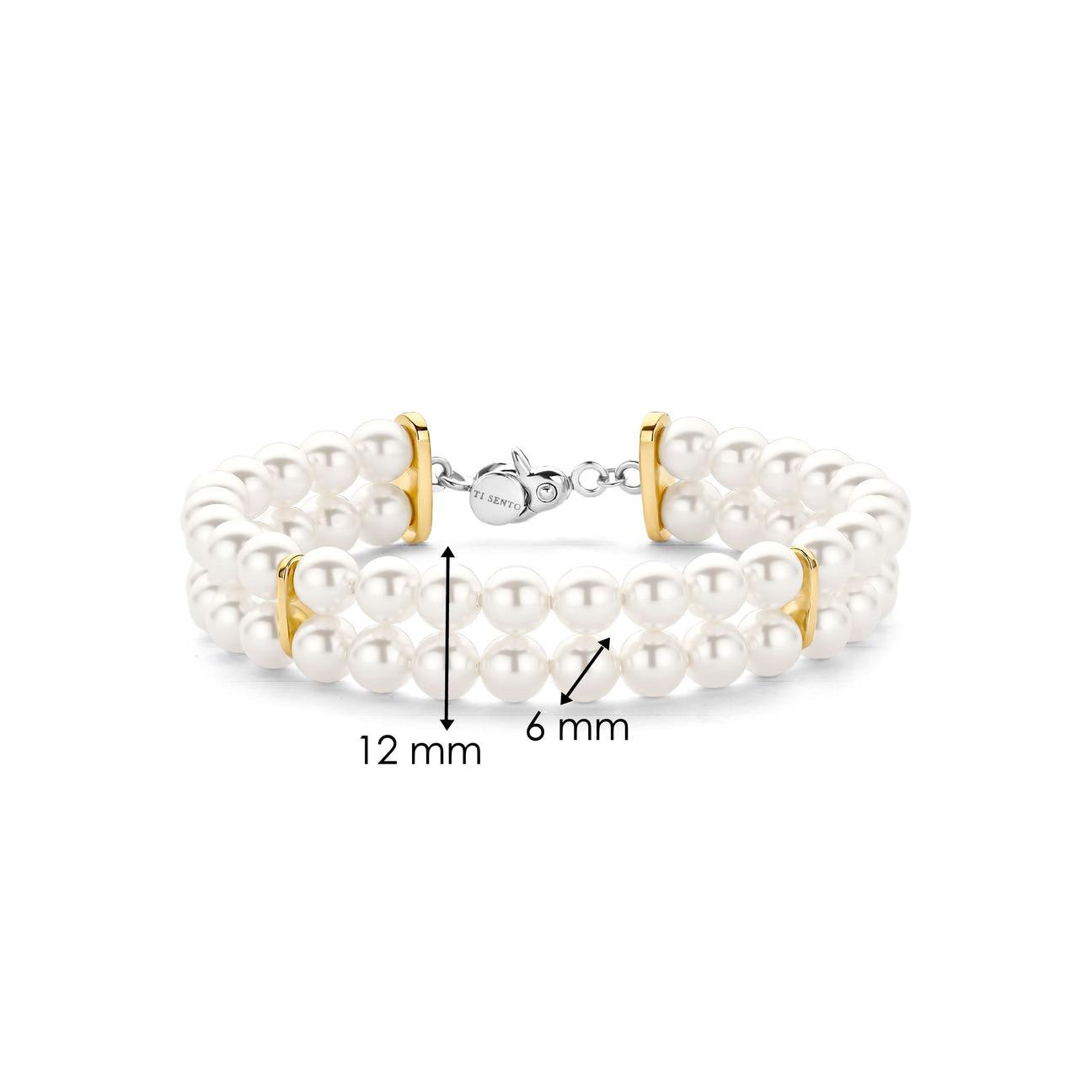 Istaknite se uz ovu pozlaćenu narukvicu sa dva reda bisera. Dizajn je upotpunjen sigurnom i prelepo izrađenom kopčom koja obezbedjuje dodatnu sigurnost. Njena bezvremenska elegancija i blistavi šarm čine je savršenim dodatkom za sunčane dane i tople večeri.