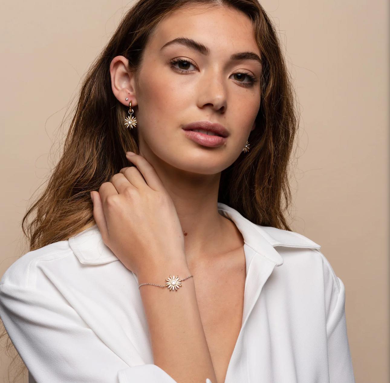 Pozlaćena srebrna Ti Sento narukvica ima elegantnu zvezdu kao njen centralni deo. Dizajn je inspirisan zvezdanim nebom i zvezdama padalicama. Nosite njenu svetlost i energiju sa sobom danju i noću.