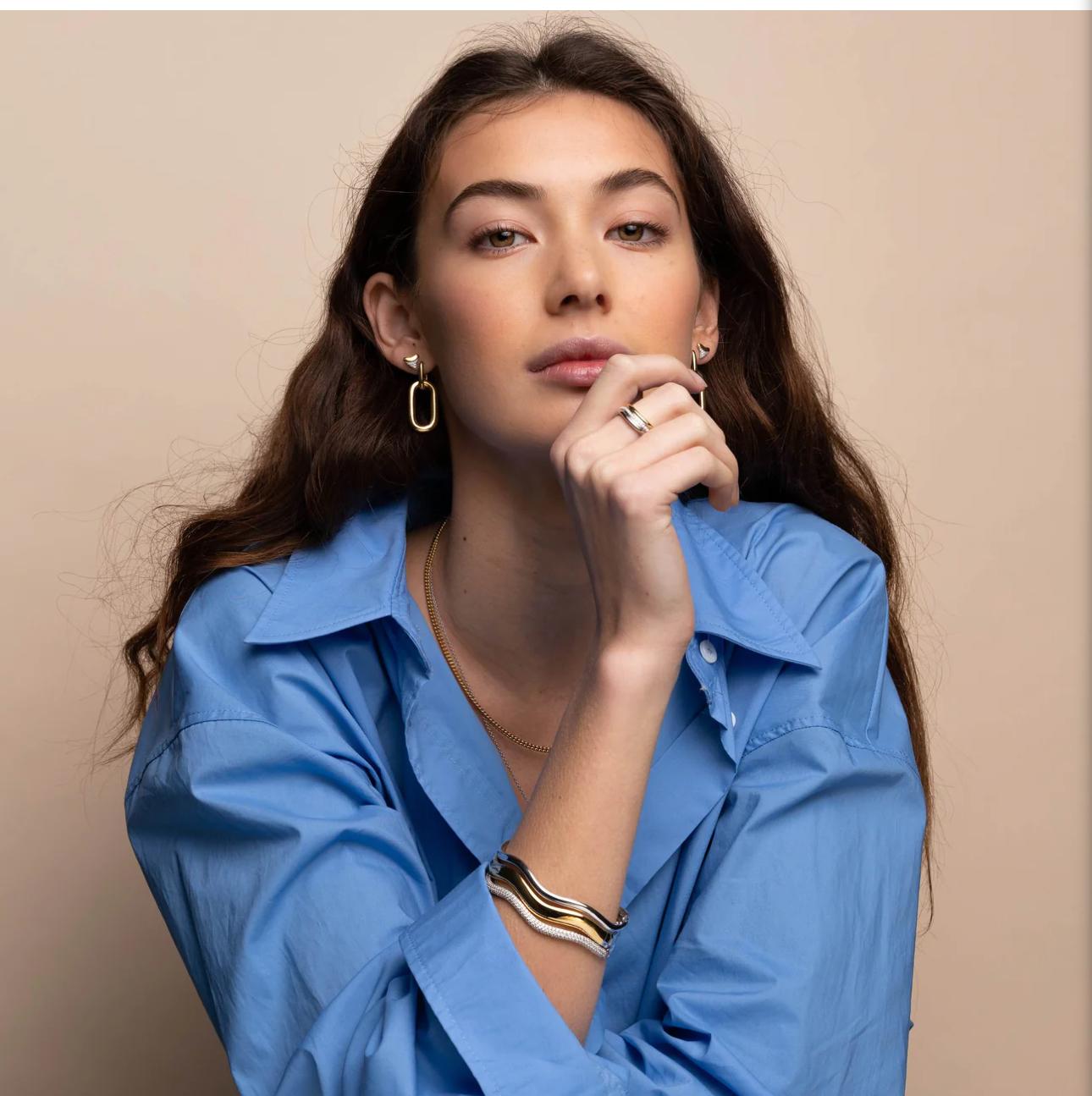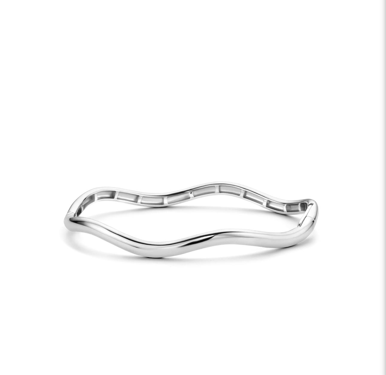 Jedisntvena narukvica vijugavog oblika inspirisana kretanjima talasa. Izrađena je od najkvalitetnijeg srebra i presvučena je slojem platine za dugotrajan sjaj.