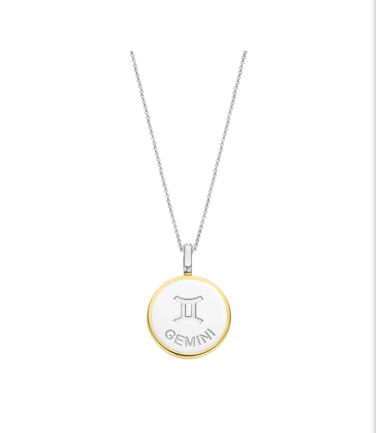 Ovaj TI SENTO privezak sa zodijačkim znakom ističe znak Blizanca. Kao simbol radoznalosti, prilagodljivosti i živosti, dozvolite ovom privezku da vas poveže sa kosmičkom energijom promenljivih Blizanaca. Izrađen je od vrhunskog srebra 925, pozlaćen i ukrasen cirkonima na prelepom seddefu.