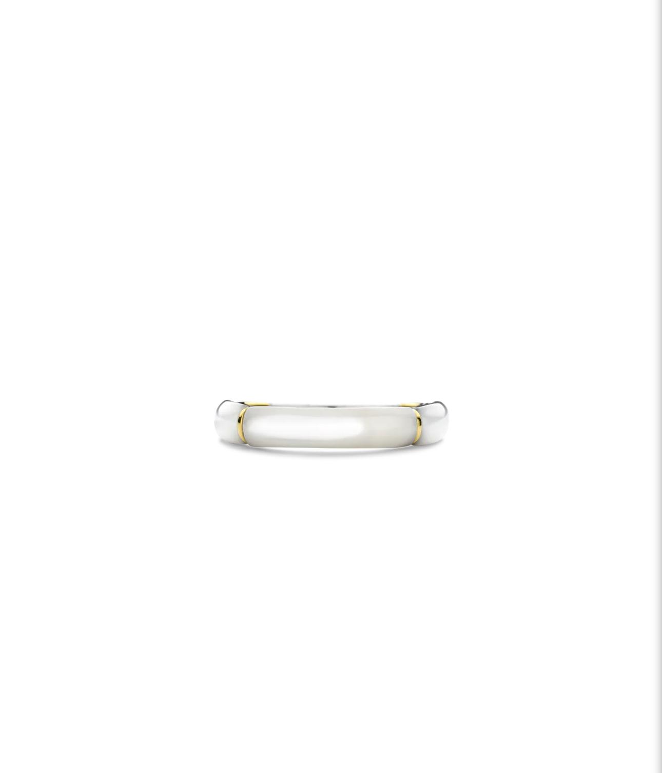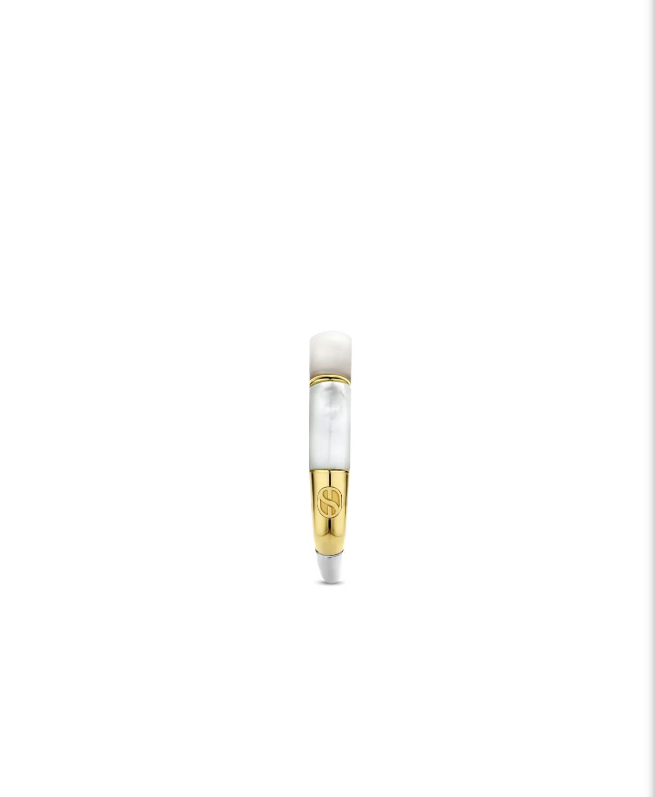 Ovaj pozlaćeni Ti Sento prsten krasi sedef umetnut u blistavo žuto pozlaćeno okruženje. Prelivajući sjaj sedefa reflektuje svetlost u zadivljujućem plesu, podsećajući na nežni sjaj meseca u zvezdanoj noći. Prsten jenu potpunosti izrađen od vrhunskog srebra 925 i pozlaćen žutim zlatom za raskošan i topao dodir.