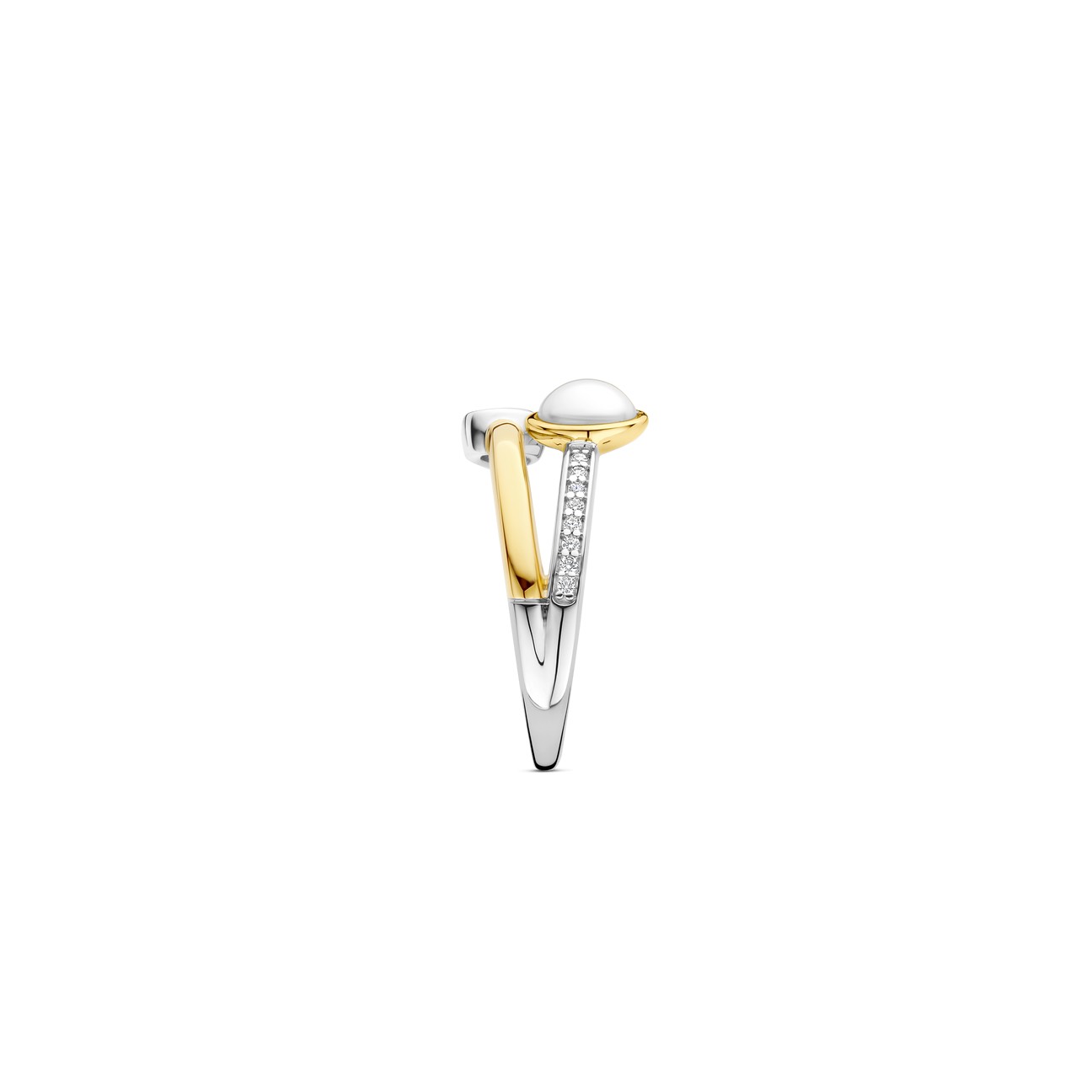 Istaknite svoju jedinstvenost uz Ti Sento pozlaćeni srebrni prsten, avangardni komad nakita koji neće proći neprimećeno. Ovaj očaravajući prsten sastoji se od dva različita prstena koji se spajaju u harmoničnom plesu. Izrađen je od najkvalitetnijeg srebra 925.